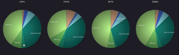 Here are four of the biggest Target Date Retirement mutual funds used nationally in 401(k) plans (I’m going to use the 2050 class, though they exist for every 5-year interval):